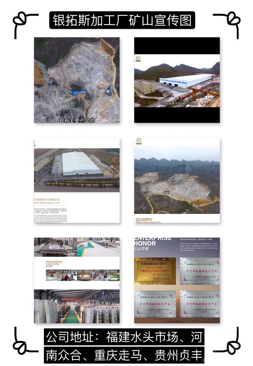 貴州銀拓斯石材有限公司成立于2012年9月,位于黔西南州貞豐縣北盤江鎮(zhèn),經(jīng)營范圍為石材開采、加工、銷售,主要加工貴州木紋、米黃等系列產(chǎn)品。貴州銀拓斯石材有限公司占地面積65.74畝。引進(jìn)國內(nèi)外先進(jìn)的石材生產(chǎn)工藝和加工設(shè)備,現(xiàn)已安裝科達(dá)靜壓鋸6臺、高效磨機(jī)1臺等設(shè)備,年產(chǎn)板材100萬平方米。公司自有木紋礦山兩處、米黃礦山兩處、新品礦山兩處,年產(chǎn)荒料5萬立方米。公司秉承“勵志創(chuàng)新、篤守誠信”的經(jīng)營理念,立足于重實際、辦實事、見實效,把文化理念融入到生產(chǎn)建設(shè)和質(zhì)量管理的各個環(huán)節(jié),致力于用文化提升領(lǐng)導(dǎo)力、執(zhí)行力和凝聚力,以文化促進(jìn)生產(chǎn)力,以軟實力提升“銀拓斯”整體發(fā)展水平,為客戶提供“高效率、高品質(zhì)、全方位”的服務(wù),不斷提升產(chǎn)品品質(zhì),程度地滿足客戶的需求。\\\\\\\