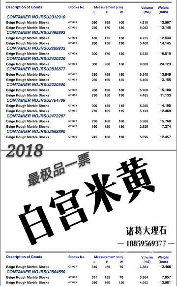 主營:白宮米黃