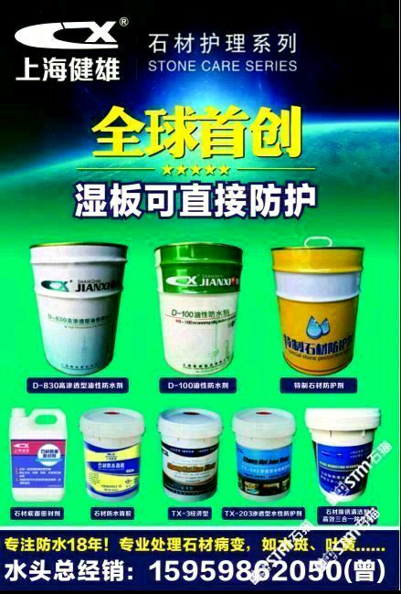 上海健雄建材有限公司成立于1998年,是上海一家從事石材養(yǎng)護(hù)方面研究的專業(yè)機(jī)構(gòu),致力于新型有機(jī)硅表面活性材料的開發(fā)和合成,達(dá)到有機(jī)硅的防護(hù)效果!本公司針對石材品種打造各種石材養(yǎng)護(hù)劑和石材病變處理劑化學(xué)品,能適應(yīng)于客戶高質(zhì)量的要求,以質(zhì)量為核心的理念服務(wù)于各種石材企業(yè)!