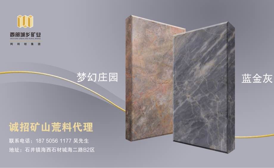 阿利坦·西部城鄉(xiāng)礦業(yè)是一家旗下自有礦山的石材企業(yè),公司有大理石礦山3座,花崗巖礦山1座,大理石加工廠1家,主營品種有:藍金灰、薩日拉、夢幻莊園、梵高黃等。公司秉承“人才至上,品質(zhì),誠信友好,合作共贏”的經(jīng)營理念,以發(fā)掘國內(nèi)外優(yōu)質(zhì)礦產(chǎn)資源為戰(zhàn)略布局,致力于成為集原料開采、產(chǎn)品設(shè)計研發(fā)、品牌化運作、銷售代理模式構(gòu)建為一體的高端天然石材綜合型企業(yè)。