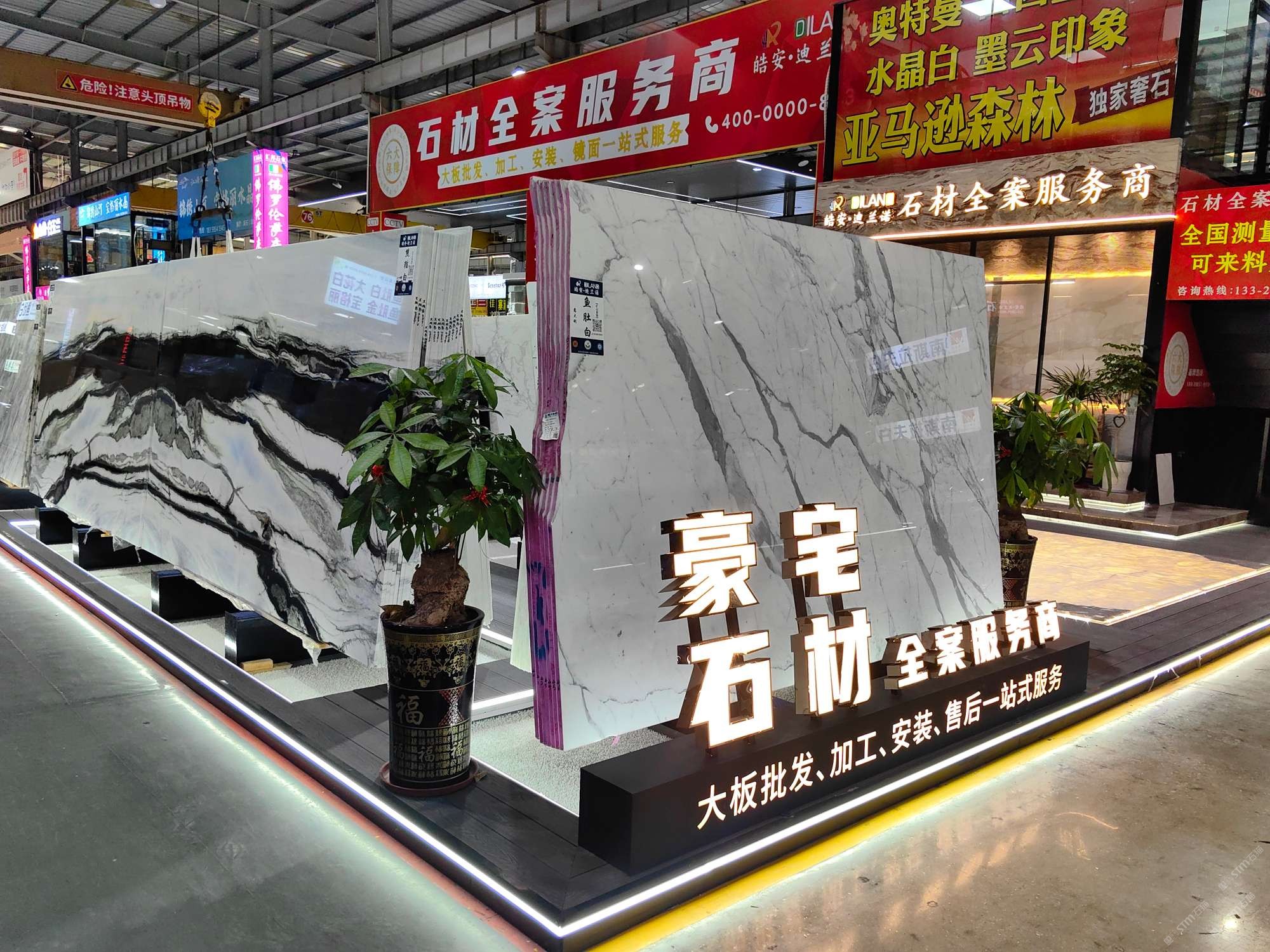 中國福建泉州水頭鎮(zhèn)澳盛大板市5A棟4區(qū)皓安-迪蘭諾輕奢石材全案服務商選材中心。