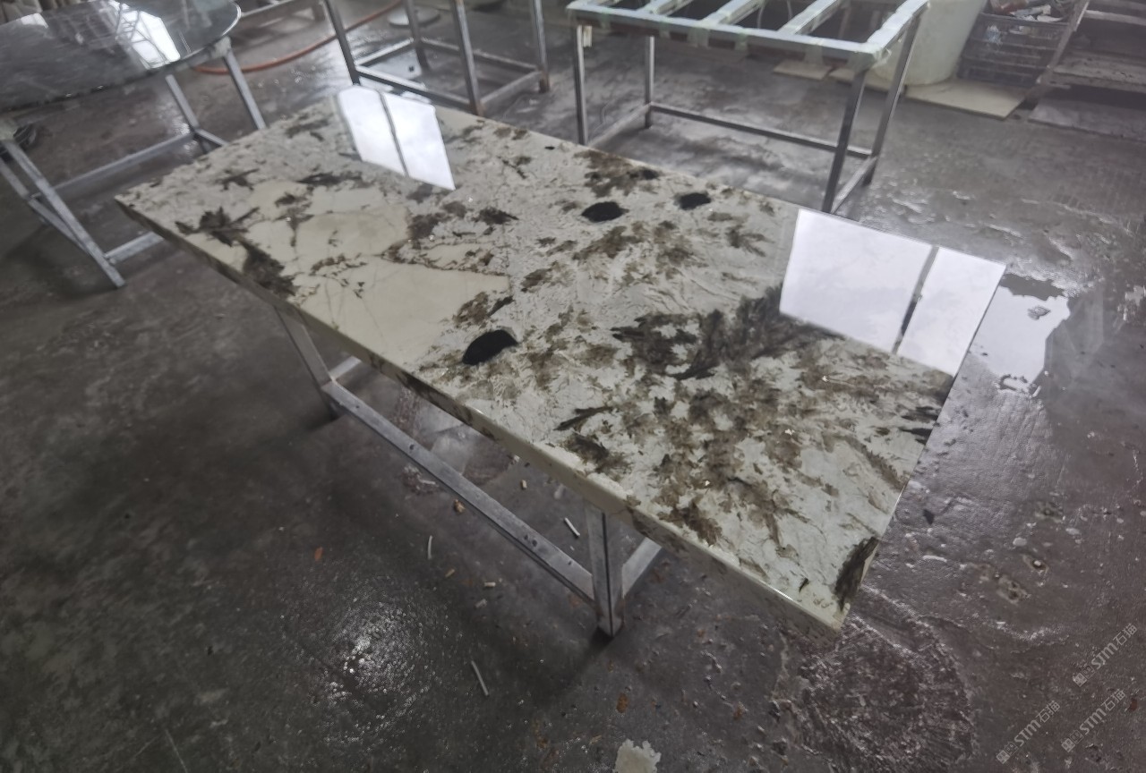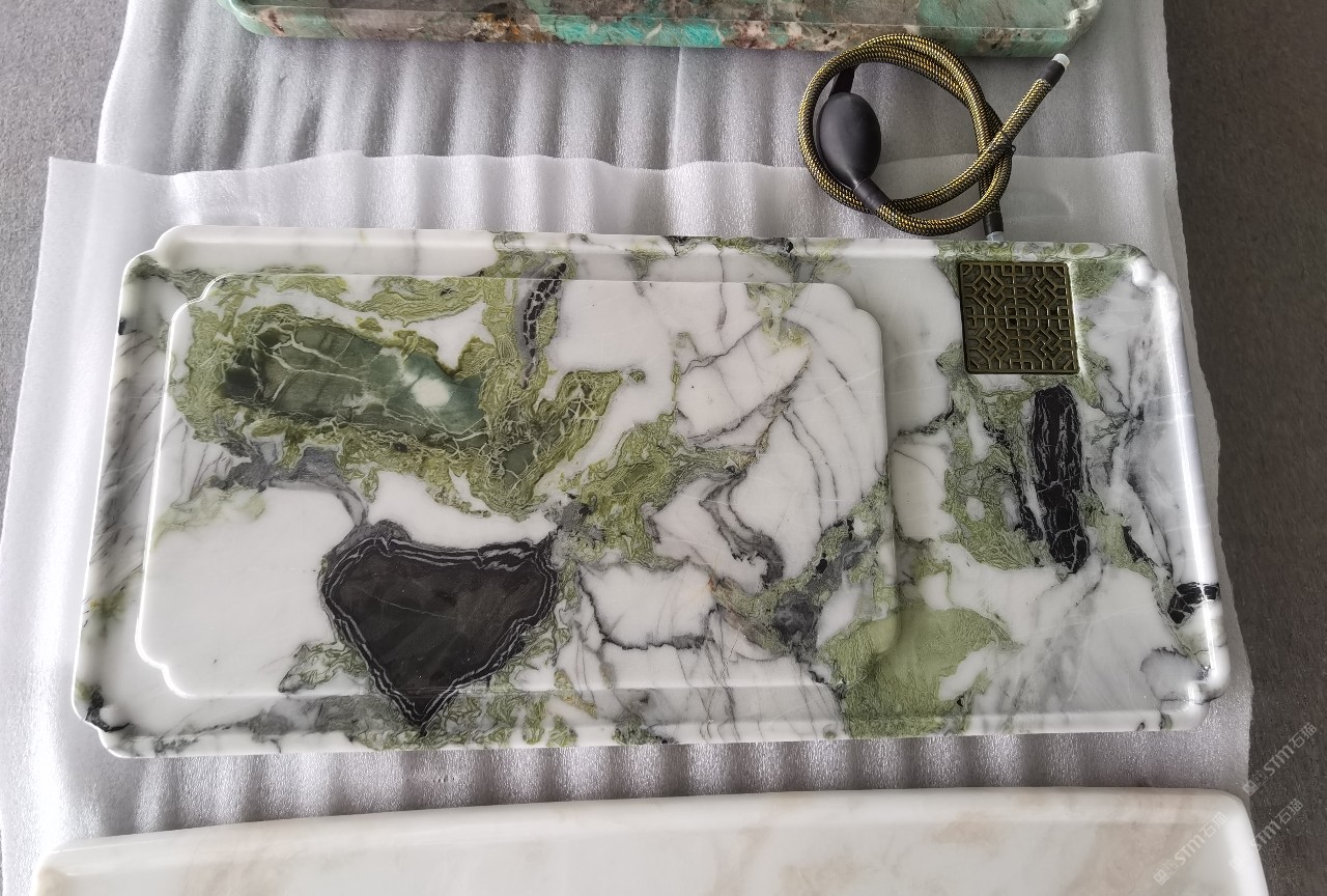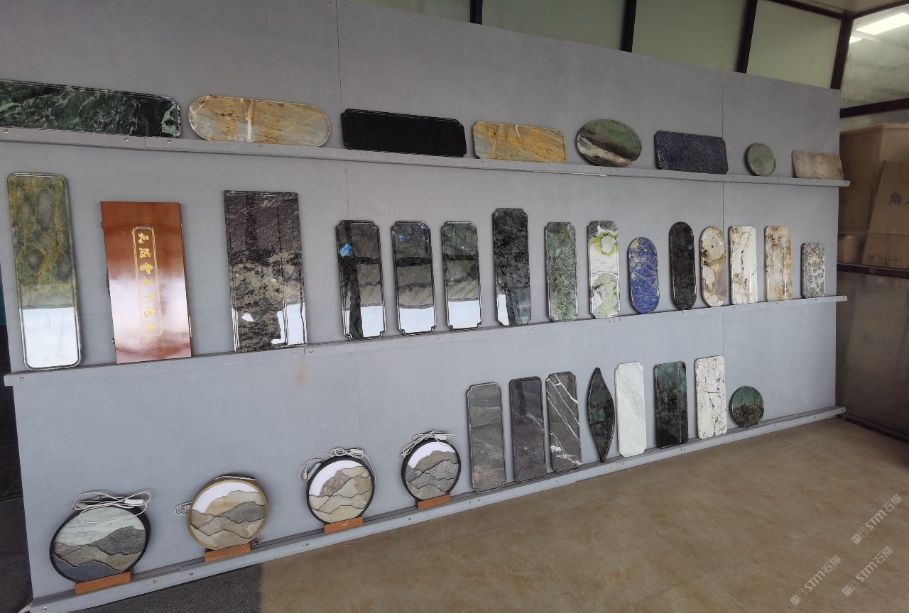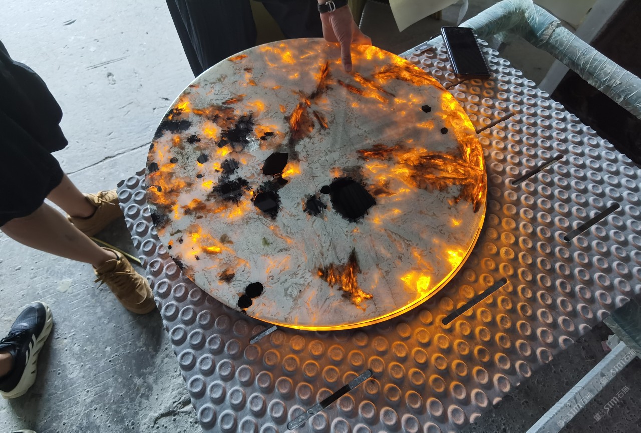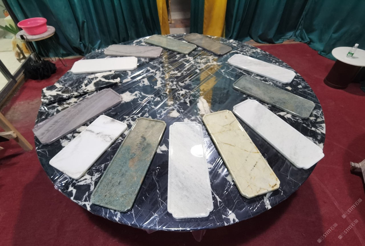 中國水頭國際石材城 奢石家具廠鏡面封釉工藝源頭廠家高端定制茶盤 干泡臺 濕泡茶盤 邊幾 餐桌 茶桌 五金底座搭配15710666636
