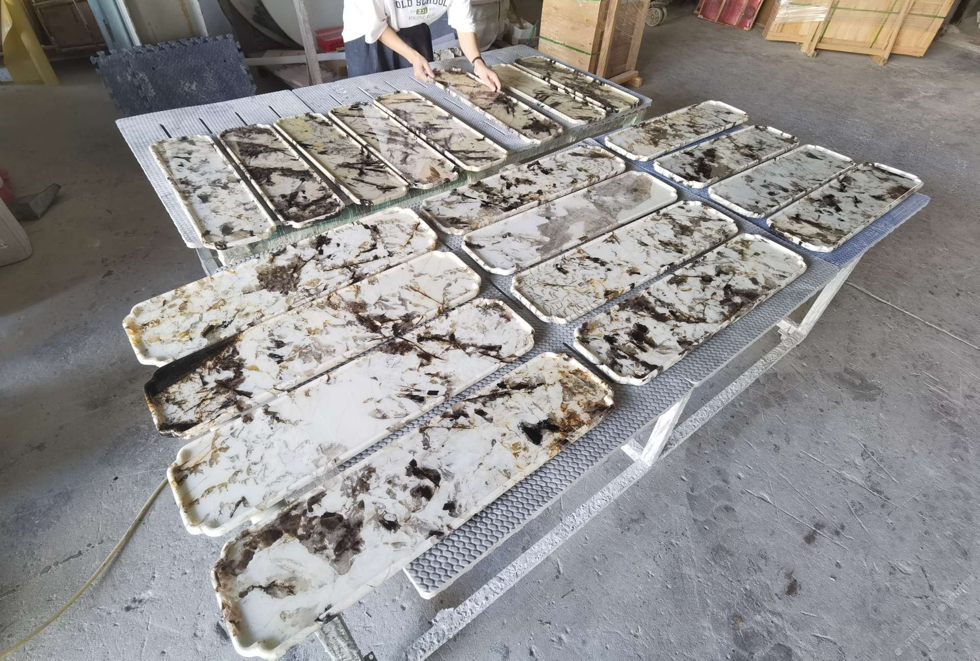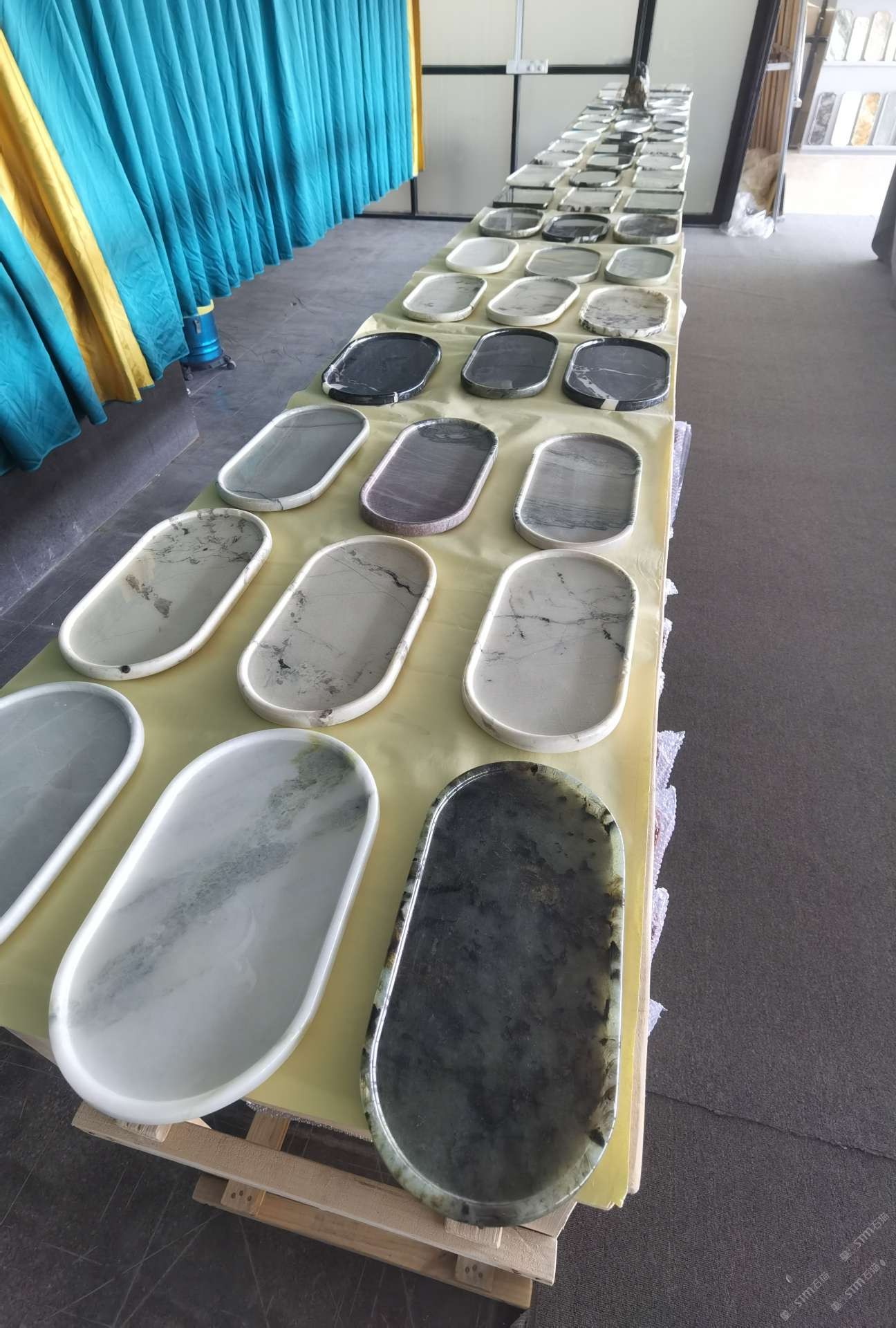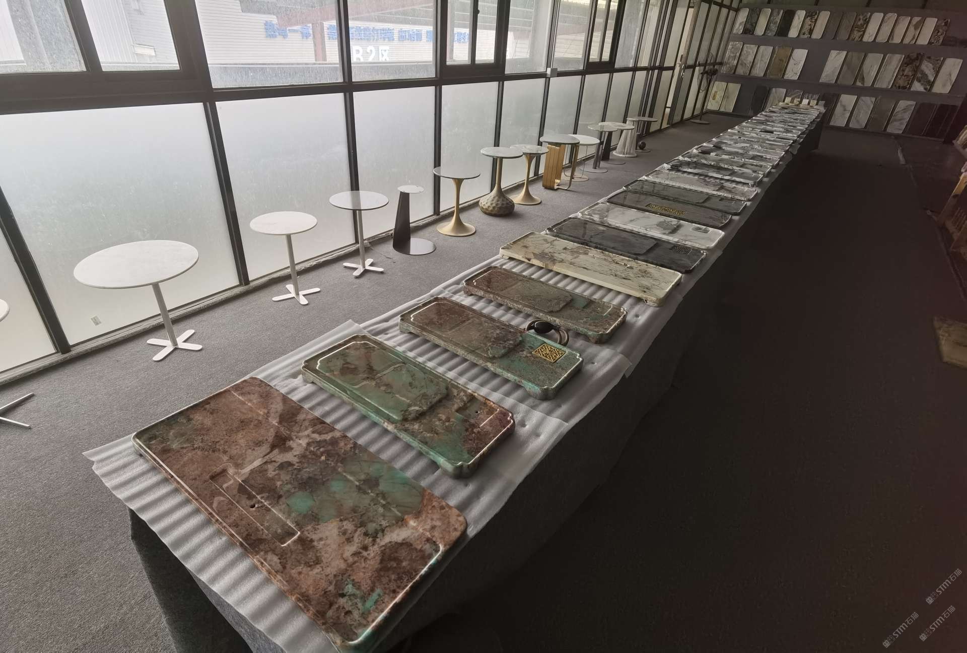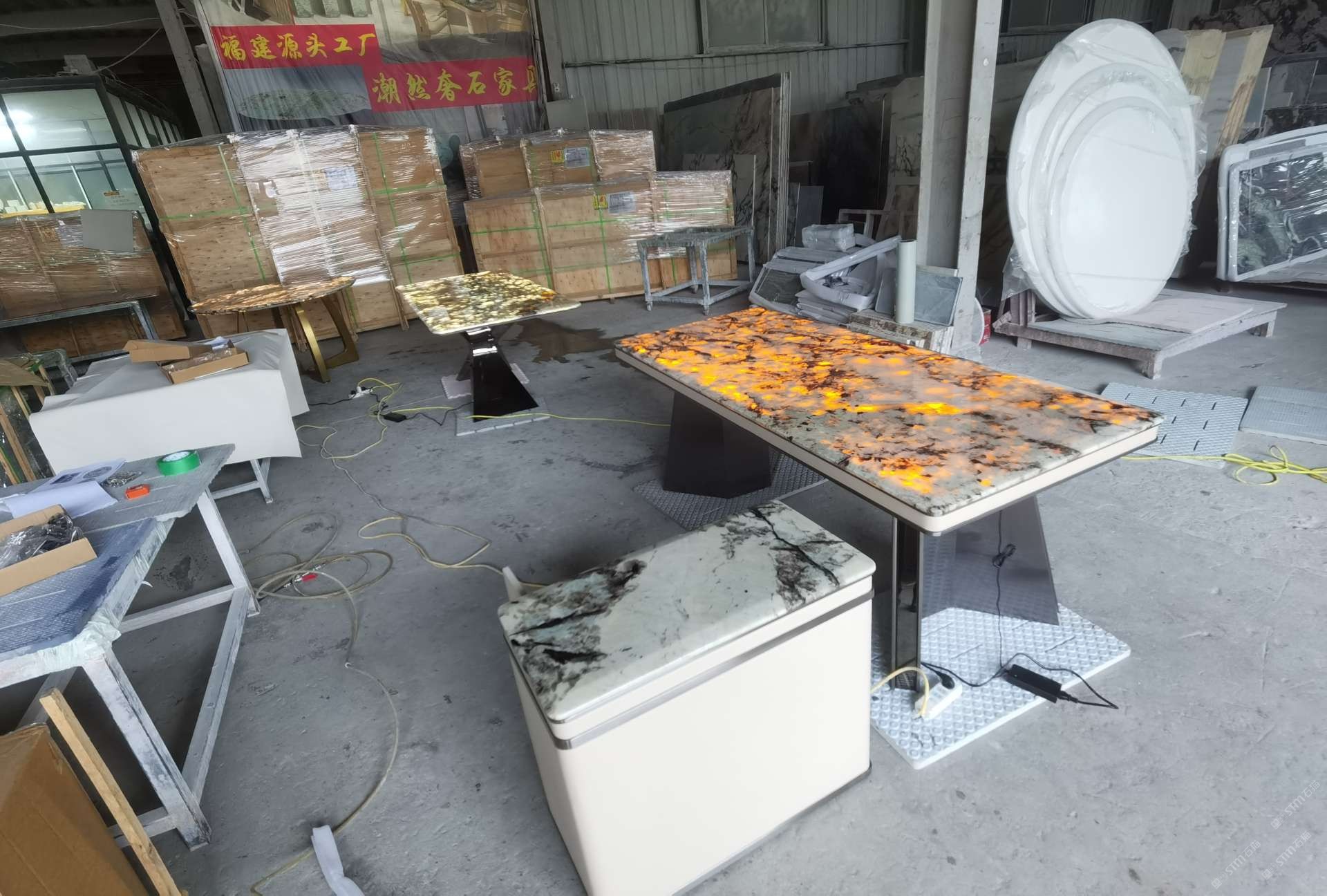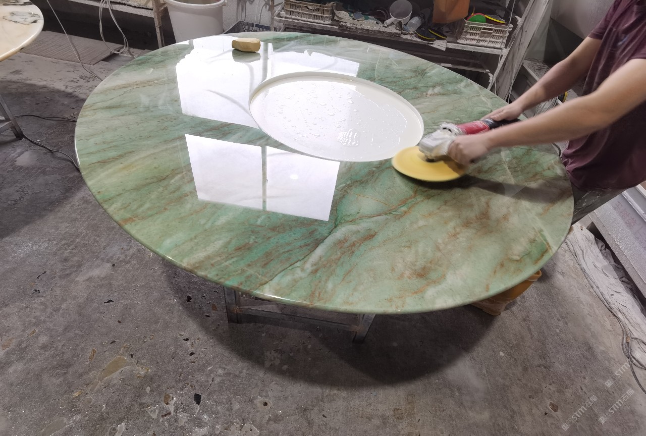 中國水頭國際石材城 奢石家具廠鏡面封釉工藝源頭廠家高端定制茶盤 干泡臺 濕泡茶盤 邊幾 餐桌 茶桌 五金底座搭配15710666636
