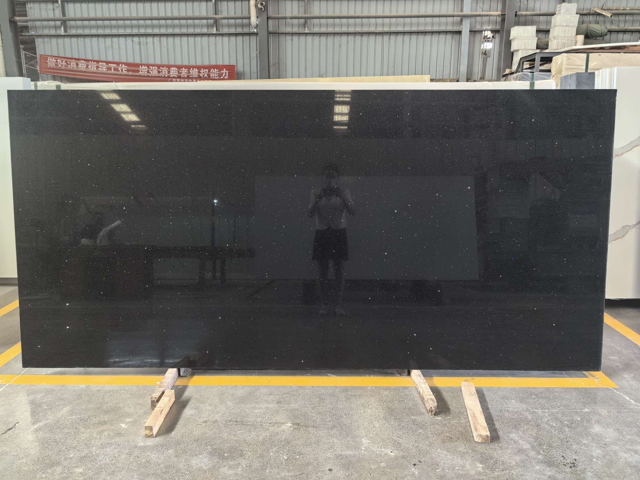 2018年,公司采用獨(dú)特的工藝技術(shù)配方,研制開發(fā)了多系列、多花色的高檔石英石板材,主要材料為石英石晶體、樹脂和微量顏料等,通過真空高壓技術(shù)聚合,再經(jīng)過復(fù)雜的表面拋光工藝,使其具有天然石材的質(zhì)感和表面光澤度,并且比天然石材質(zhì)地堅(jiān)硬、緊密,石英石具有比其它材料更優(yōu)良的耐磨、耐壓、耐高溫、抗刮傷、抗腐蝕、防滲透、抗老化、無輻射等特性;表面平整、光亮、色彩艷麗豐富,因此,被廣泛應(yīng)用于家庭室內(nèi)裝修,高檔櫥柜臺(tái)面,實(shí)驗(yàn)室化驗(yàn)室操作臺(tái),酒店、醫(yī)院、商業(yè)綜合體、機(jī)場(chǎng)、寫字樓、酒店餐飲教育研究、醫(yī)療機(jī)構(gòu)等場(chǎng)所的地面、墻面及各種工作臺(tái)面,其出眾的表面物理化性能和使用性能是其它材料所望塵莫及。