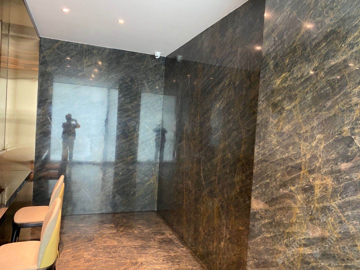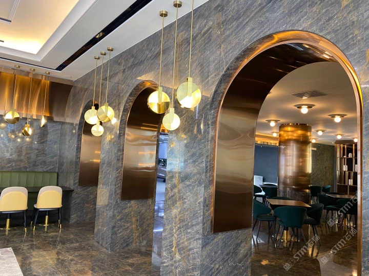 發(fā)布信息: 長(zhǎng)春富邑四季匯會(huì)館 ”琥珀灰與金色金屬的兼容性極高,從門口金字招牌,到金色門框,到用于隔斷的金色架子,再到裝飾用的懸吊的金色飾物,大理石加金屬,金色配合深色,碰撞到一起進(jìn)一步營(yíng)造高端奢華感?!?/span>