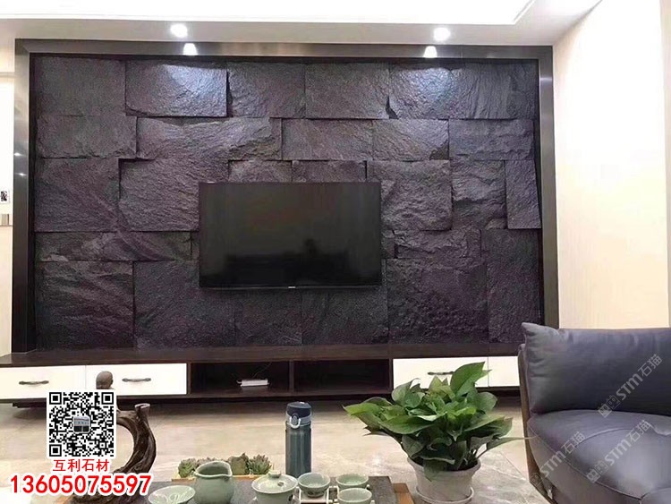 福建芝麻黑G654花崗巖自然面文化石墻磚電視背景墻