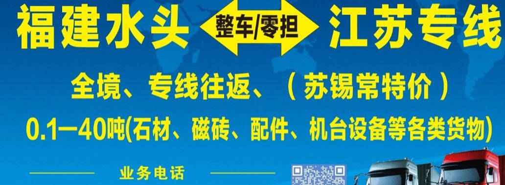 發(fā)布信息: 福建泉州水頭—江蘇全境,往返專(zhuān)線(xiàn)。 (蘇錫常特價(jià)?。?24小時(shí)在線(xiàn)接單 零擔(dān)~整車(chē),0.1噸—40噸。 承接各類(lèi)石材,瓷磚,機(jī)械等各類(lèi)運(yùn)輸。 專(zhuān)注運(yùn)輸,用心服務(wù)。可開(kāi)發(fā)票。 江蘇專(zhuān)線(xiàn)15860361020。(微信同步)