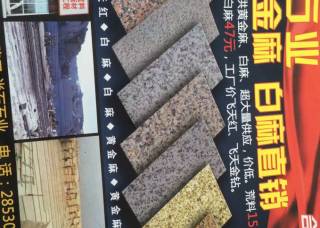 阿拉善左旗鑫良礦業(yè)有限責(zé)任公司主營(yíng)產(chǎn)品:金色玫瑰,阿拉善黃,中國(guó)黑,芝麻灰,阿拉善紅,金色玫瑰1,金色玫瑰(深底),盤(pán)古金,盤(pán)古金1,茉莉金麻,新茉莉金麻,新茉莉金麻1,茉莉金麻1,漠玉黃,漠玉黃1,漠玉黃2,莫玉煌荔枝板,莫玉煌光板,皇室金麻,橙色玫瑰,新卡麥,諾爾紅,阿拉善金,阿拉善棕,沙漠金(諾爾玫瑰),沙漠棕,路易斯金,新卡麥1,白麻企業(yè)地址:內(nèi)蒙古阿拉善盟阿拉善左旗吉蘭泰鎮(zhèn)